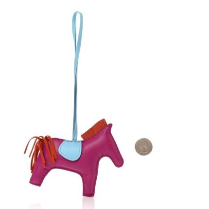 Hermès Milo Lambskin Grigri Rodeo Horse Bag Charm MM Rose Pourpre Cornaline Celeste