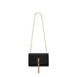 CLASSIC MONOGRAM Saint Laurent SHOULDER BAG WITH INTERLOCKING METAL YSL SIGNATURE AND METAL CHAIN TASSEL.