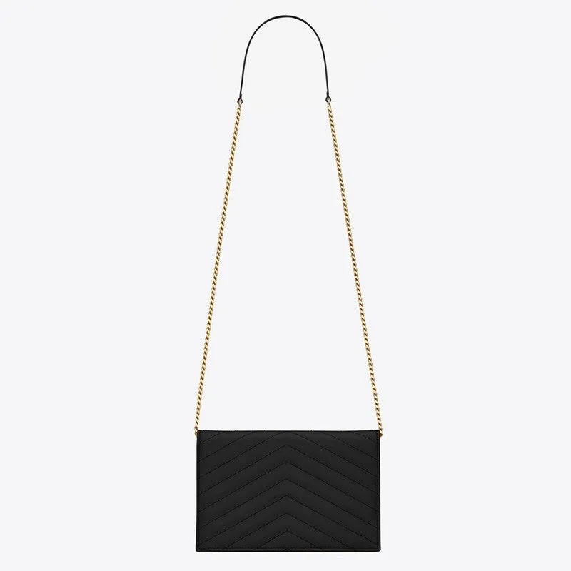 Saint Laurent Envelope Chain Wallet In Grain De Poudre Embossed