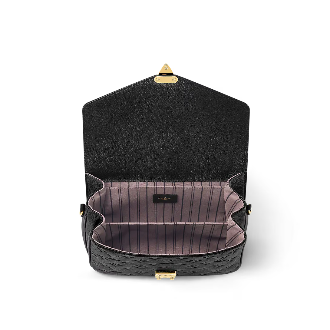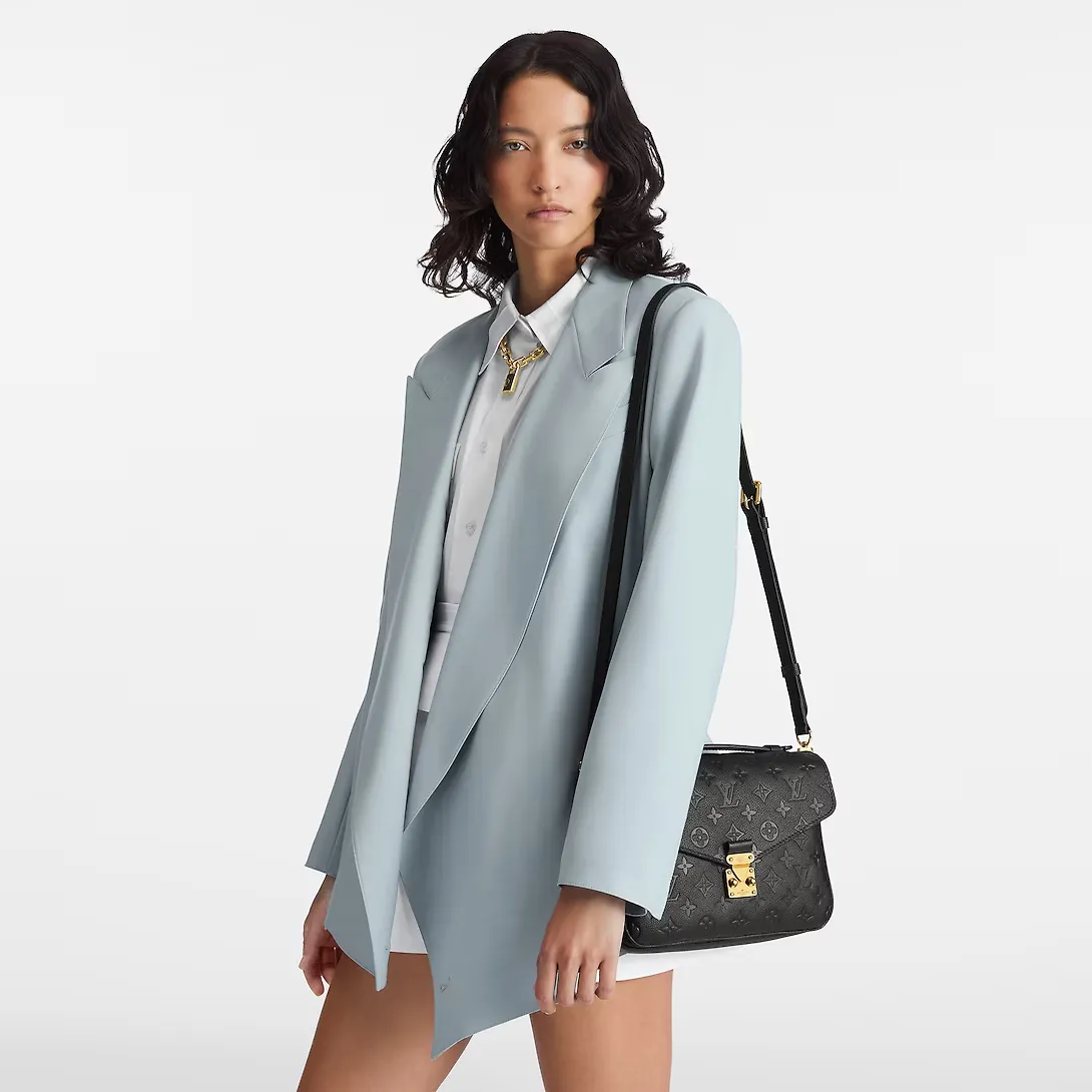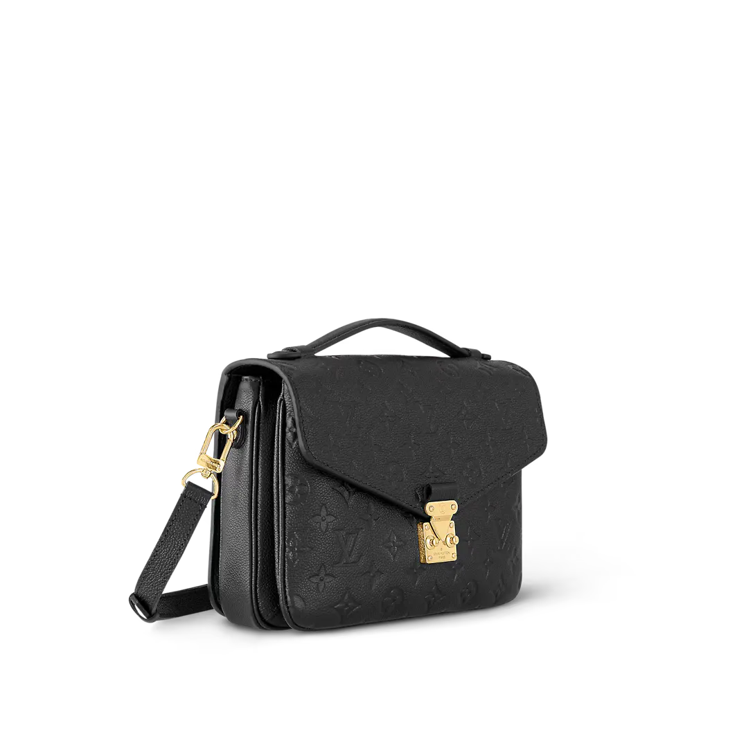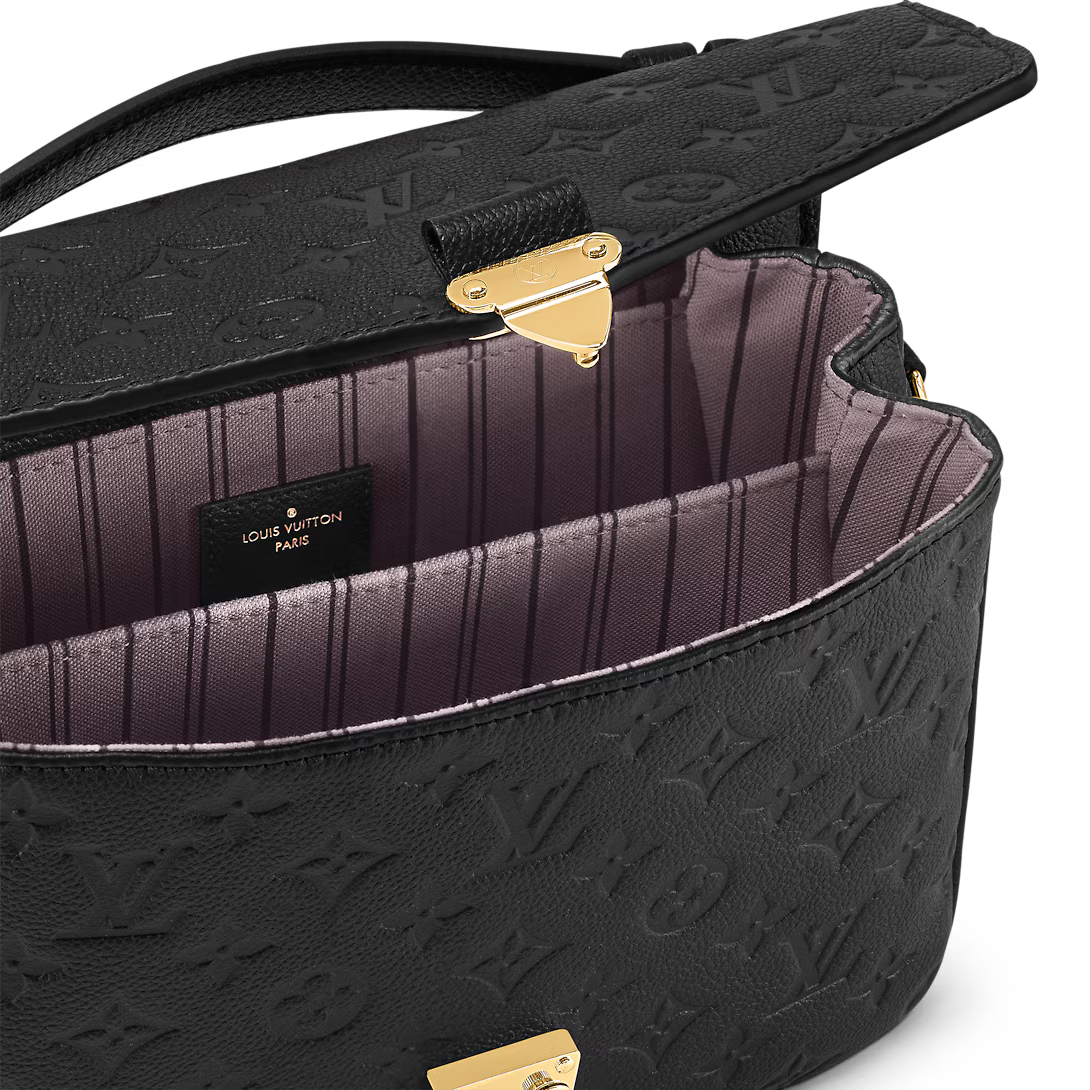Elegance is personified in the petite shape of the Pochette Metis. Made of supple Monogram empreinte leather its compact dimensions open up to revea•L many usefu•L pockets and compartments.