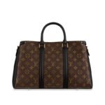 An elegant choice for city wear this edition of the Soufflot MM in supple Monogram canvas is richly accented with colored leather gussets and trim. The lateral bands and name tag nod to the Keepall a House icon since 1934. Articulated top handles and a long adjustable strap afford multiple carry options while the coordinated colored lining adds refinement.