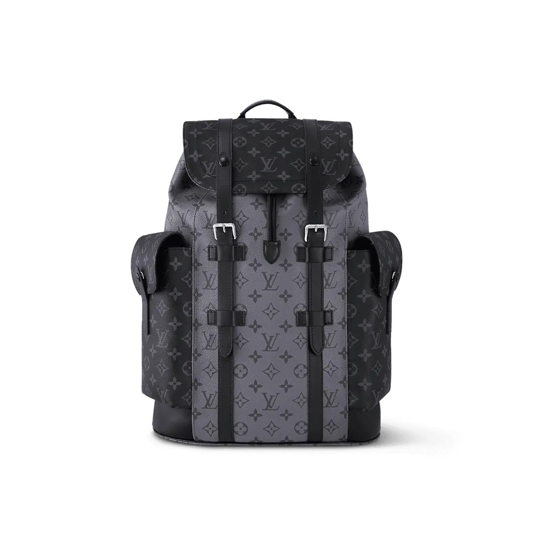 • The Christopher MM backpack reinvents the rugged spirit of a hiking pack in masculine Monogram Eclipse canvas and Monogram Eclipse Reverse canvas with black leather trim. The grays and blacks are complemented by the silver highlights of the buckles and zips. Multiple pockets and a leather flap with a press-stud keep belongings safe.