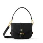 This edition of the Saumur BB in a new softer Epi leather revisits an archival design. The saddle-bag silhouette is detailed with House signatures including the LV Circle emblem and finely crafted buckles. The front buckle is fitted with a magnetic closure a modern touch. The strap and top handle are both detachable for a variety of styling options.