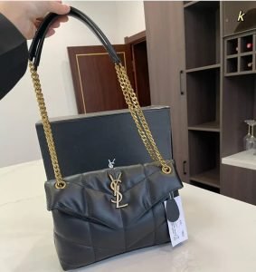 THE ICONIC LOULOU IN PUFFER VERSION WITH CHEVRON QUILT OVERSTITCHING.