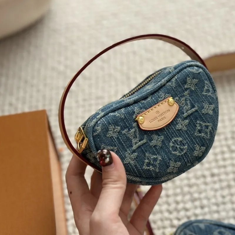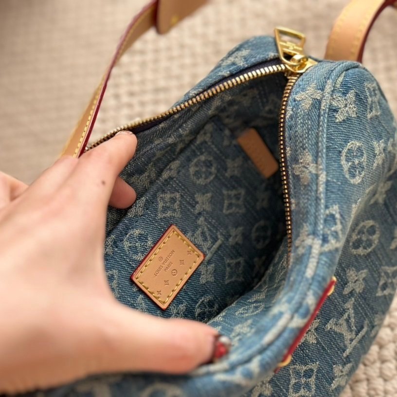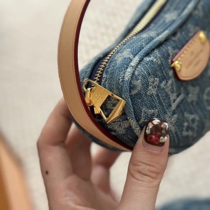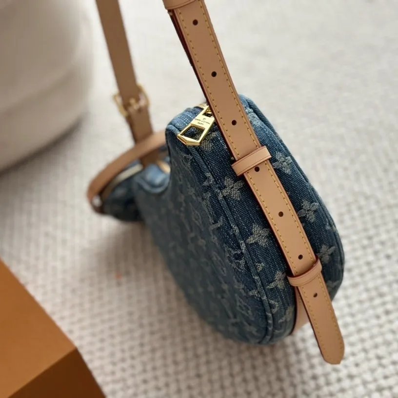 Made from certified-organic cotton Monogram Denim canvas brings casual sophistication to the Croissant MM handbag. With its detachable strap that adjusts on both sides the versatile Croissant can be worn cross-body or on the shoulder with or without the mini croissant attached. Each bag comes with a matching mini version of the Croissant that is four times smaller than the original.