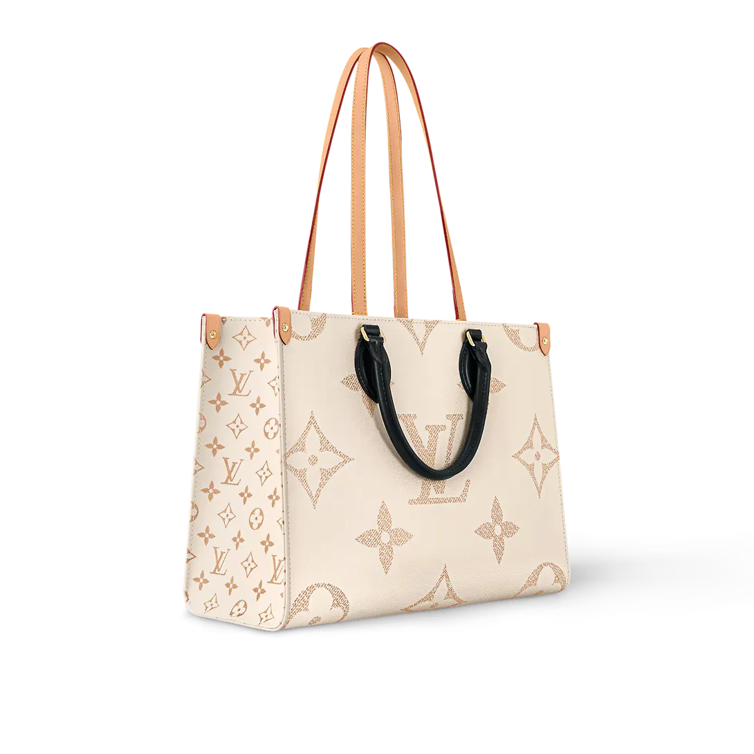 From the Cruise 24 collection comes this OnTheGo MM a capacious tote crafted from new Monogram Dune canvas. The sand-inspired colorway gives a modern effortless air to this versatile OnTheGo which features two top handles in contrasting black leather and twin shoulder straps made from the Maison’s heritage natural cowhide. Golden hardware adds a gleaming flourish to the piece.