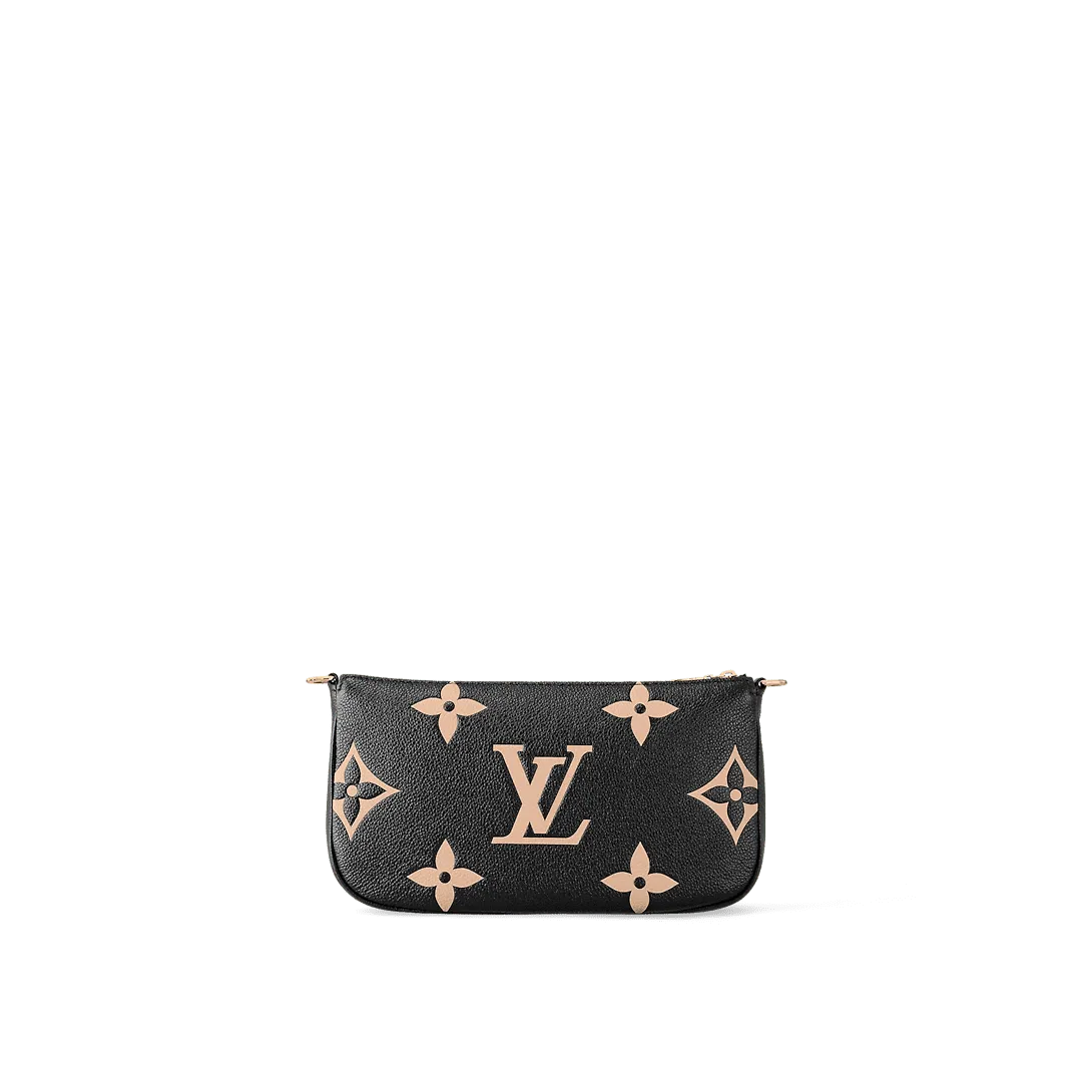 The Multi Pochette Accessoires cross-body bag takes on a striking aspect in embossed black Monogram Empreinte leather overprinted with the Monogram motif in a cream color. Just the right size to carry a woman’s essentials this two-in-one bag keeps things organized with its removable pouches. It’s comfortable to wear thanks to its suppleness and light weight.