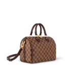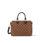 The Speedy Bandoulière 25 in graphic Damier Ebene canvas is an ideal city bag for every day. Originally created for travelers in the 1930s – the name refers to the era’s rapid transit – every feature of the Speedy’s design is iconic from its unmistakable shape to the rolled leather handles engraved padlock and detachable strap.