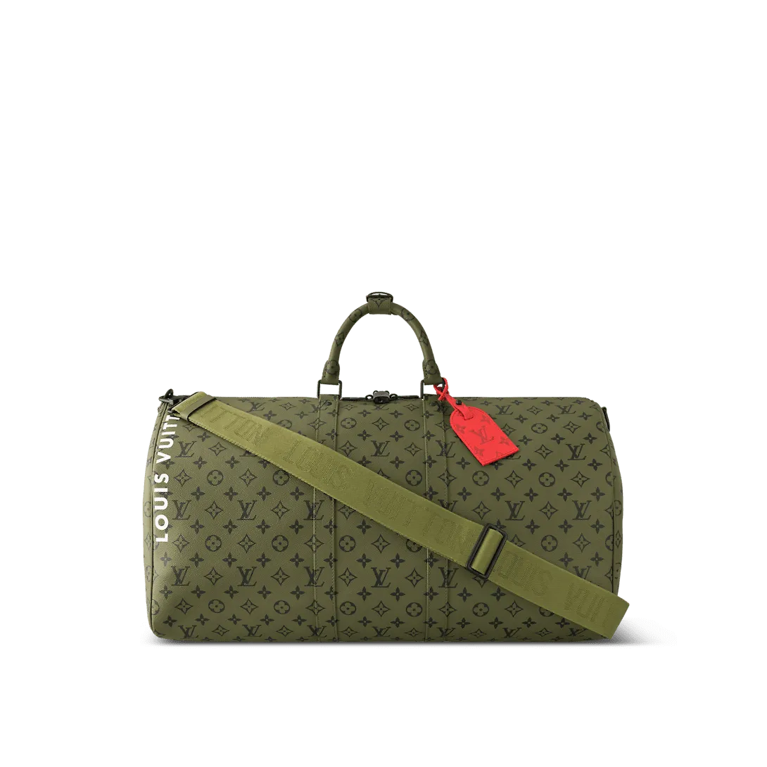 This Keepall Bandoulière 55 from the Monogram Tones capsule is made from Monogram canvas in a new colorway. The bag’s dominant khaki-green Monogram is contrasted with touches of bright-red Monogram canvas on the removable name tag for example. A practical travel bag this Keepall has a removable and adjustable shoulder strap.