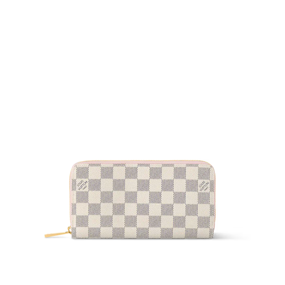 Damier Azur canvas gives a fresh look to Louis Vuitton’s iconic Zippy wallet which is famous for its secure zip-around format. The wallet unzips to reveal a well-organized interior in grained cowhide leather with a variety of pockets compartments and card slots. This smart design can also be carried as a clutch.