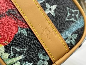The Keepall Bandoulière 25 is a smaller version of Louis Vuitton’s famous Keepall travel bag. It’s made from Pharrell Williams’ Monogram Surfin’ canvas with its intricate print combining different summery motifs. The bag’s design and tropical print give this city bag a vintage feel. A detachable strap and two rolled-leather top handles enable carry options.