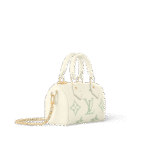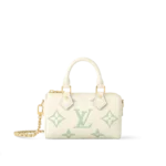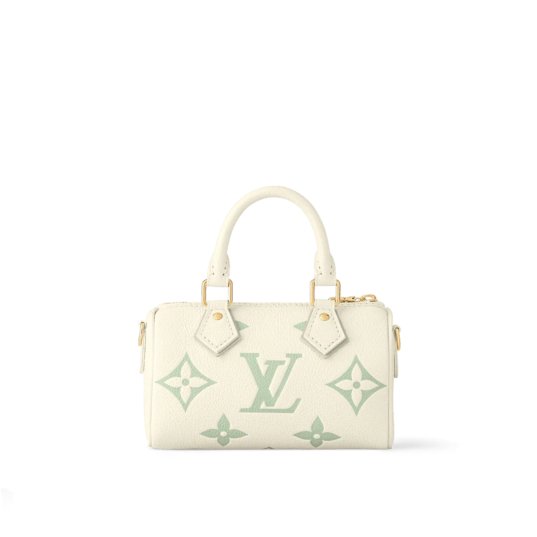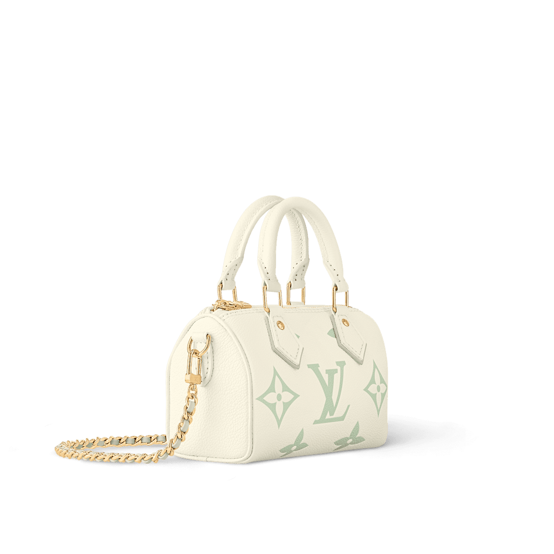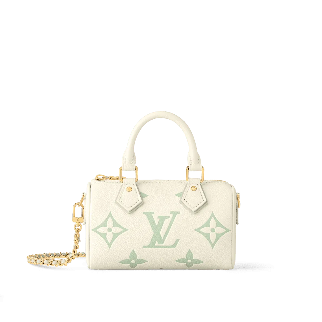 The Nano Speedy bag is revisited in supple grained Monogram Empreinte leather in a fresh bicolor palette that highlights the embossed Monogram pattern. This mini replica of the iconic Speedy comes with two handles and a removable gold-tone chain which is interlaced with leather offering a refined look and different carry options.