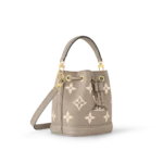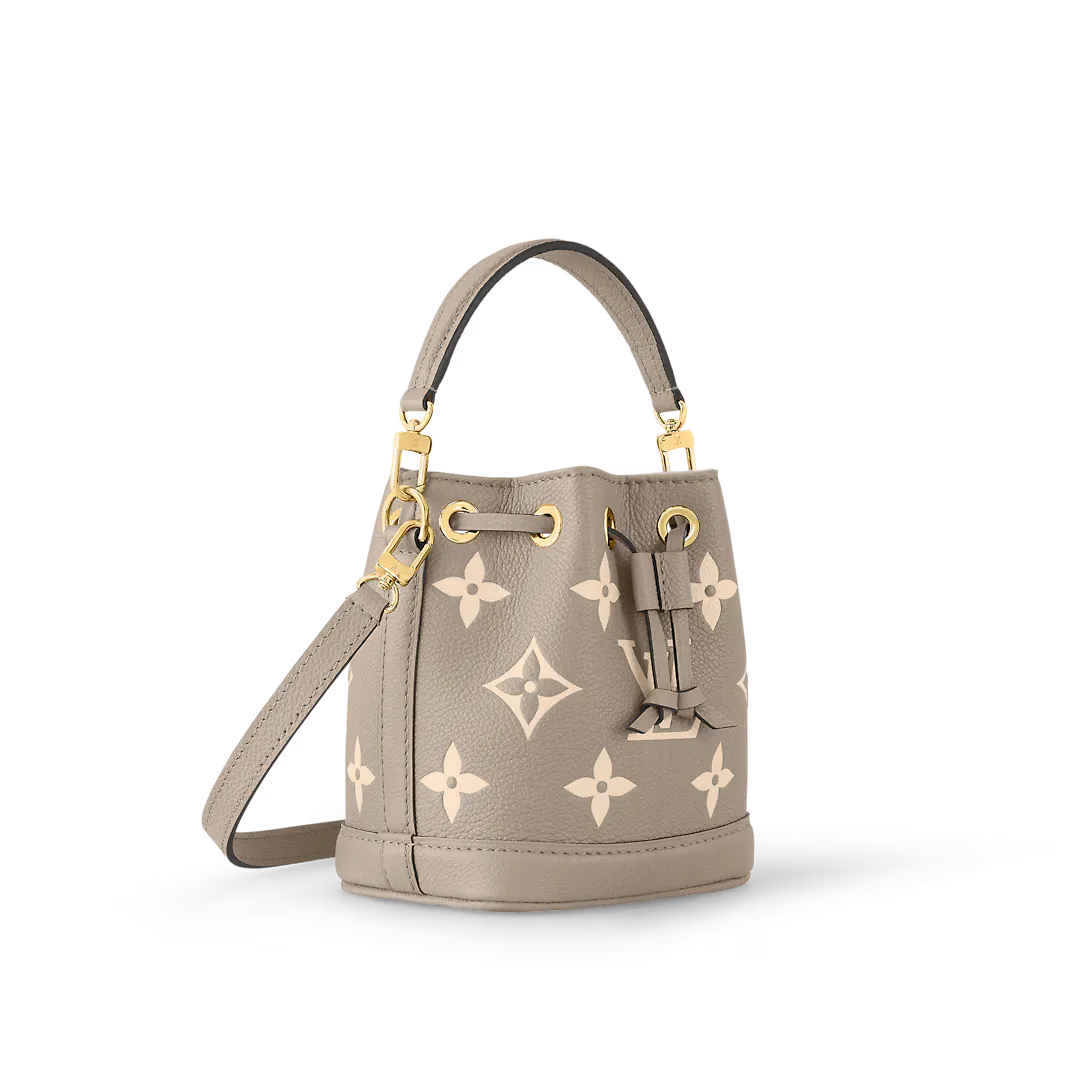 This bicolor version of the Nano Noé is crafted from supple Monogram Empreinte leather embossed with the Monogram pattern. This miniature replica of the iconic Noé bag is a stylish way to carry everyday essentials. In addition to its practical drawstring closure it features a removable handle and a removable adjustable shoulder strap for different carry options.