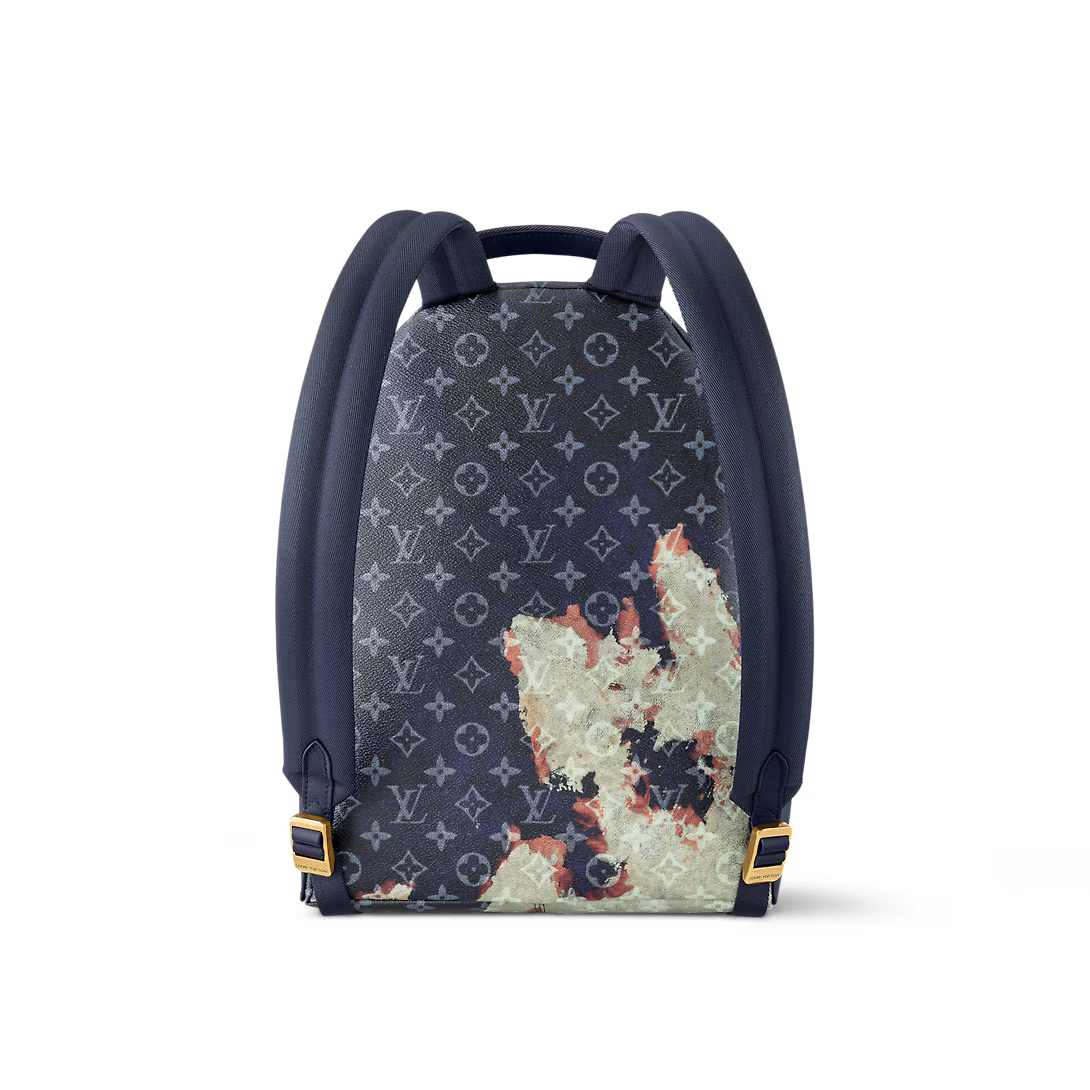 Inspired by the bonfire theme for Spring-Summer 2024 the Monogram Bleach look gives the Discovery backpack an infusion of edgy elegance. Dark blue Monogram canvas the color of a night sky is combined with lighter shades in a pattern that recalls the ever-changing shapes of flickering flames. And the distinctive aged gold finish of the metal pieces creates an eye-catching contrast.