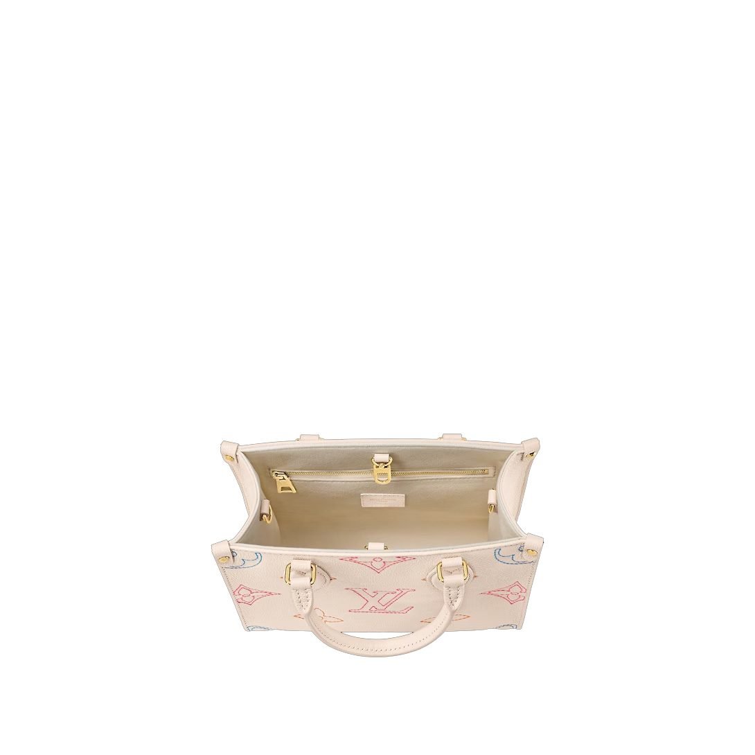 This OnTheGo small handbag comes from the 2023 autumn LV Academy series. It is made of Monogram Empreinte embossed leather embellished with embroidered Monogram patterns playing with the eye-catching collision of texture and color making it a perfect choice for the back-to-school season.