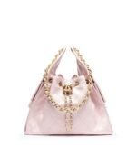 The interior is lined in Light Pink grossgrain fabric and has three small slit pockets; one on the rear wall and one slit pocket on each interior side.
