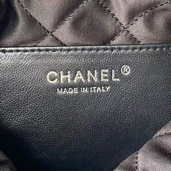 Chanel 22 AS3980 Mini Tote Shiny Calfskin & Silver Metal Silver Black
