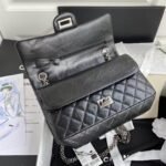 Chanel 23A Classic Medium 2.55 Flap Bag Black Distressed Calfskin Ruthenium Hardware
