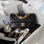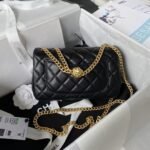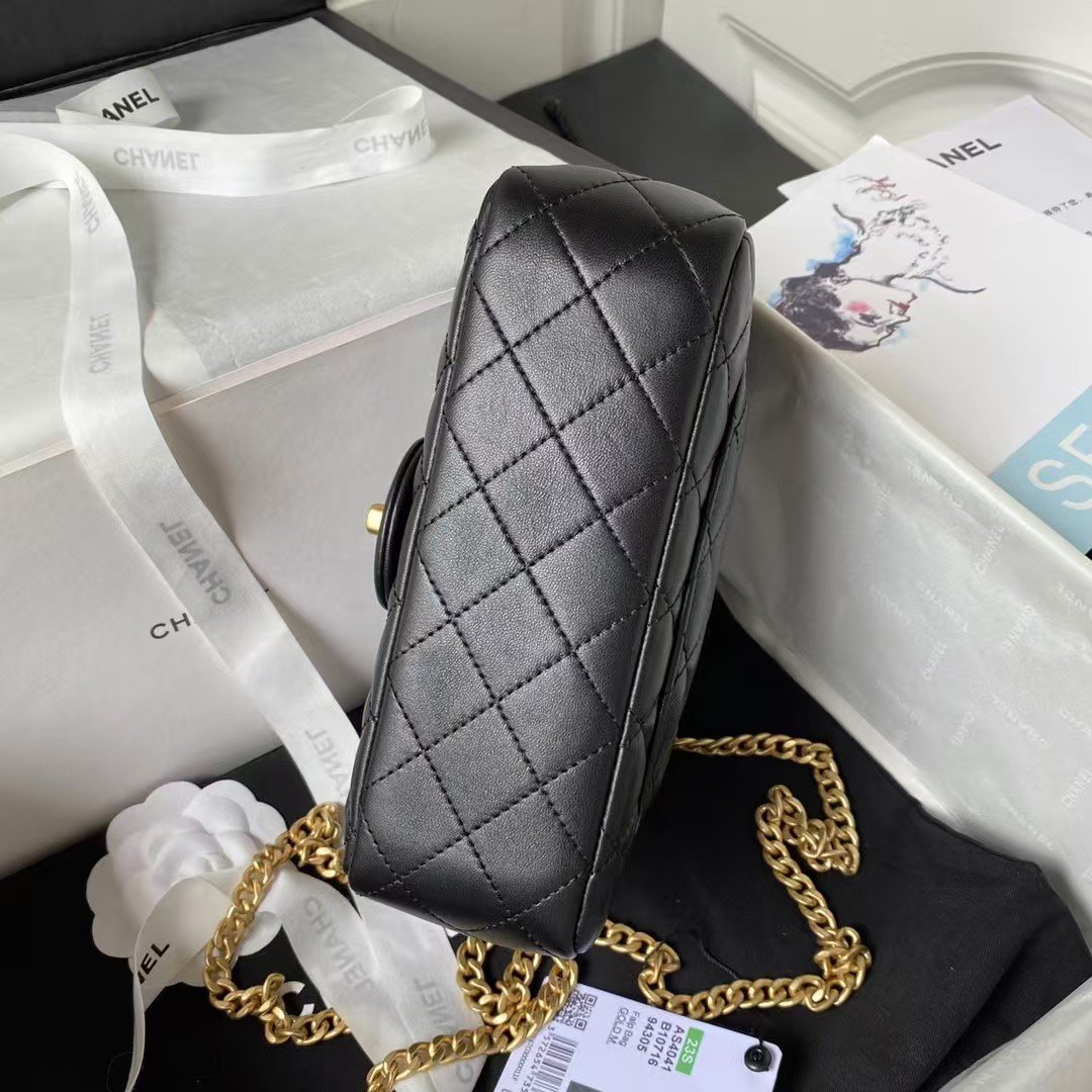 Chanel 23S AS4041 Mini Camellia Embossed Rectangular Flap Bag Antique Gold Hardware Black