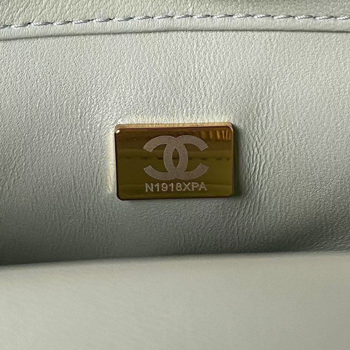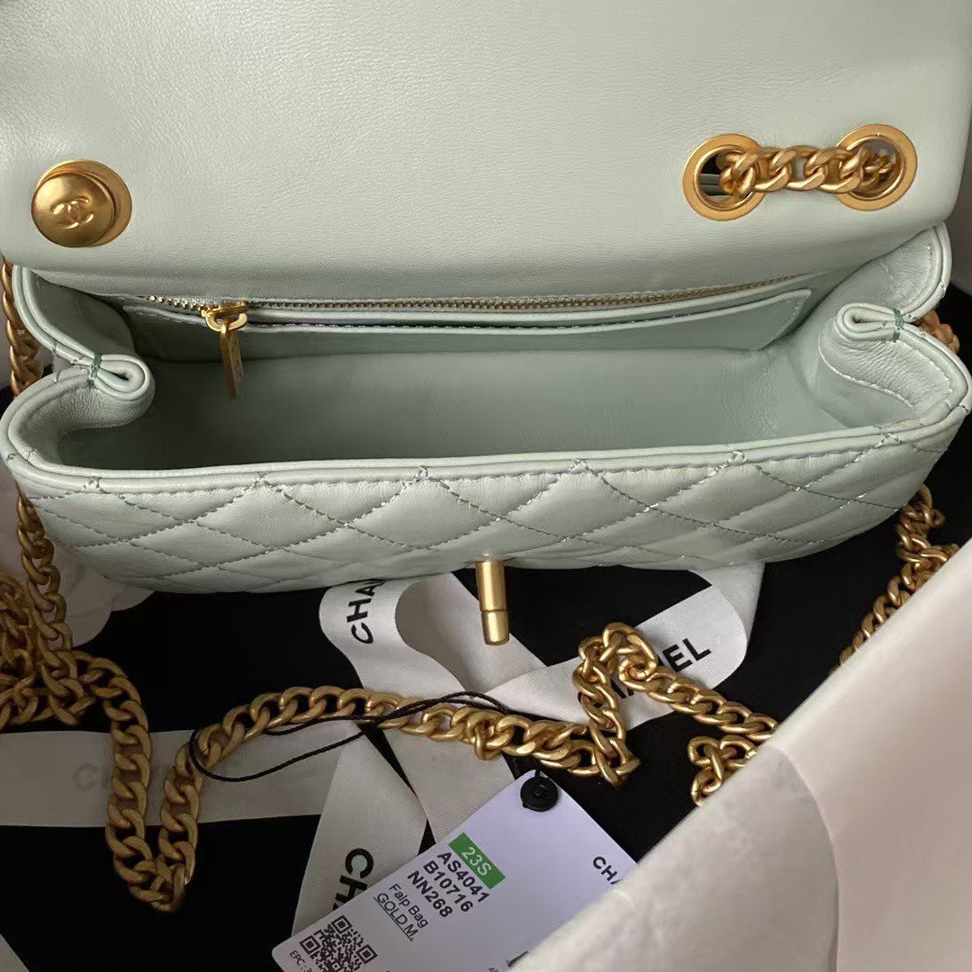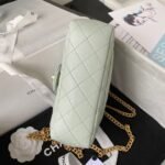 Chanel 23S AS4041 Mini Camellia Embossed Rectangular Flap Bag Antique Gold Hardware Light Green
