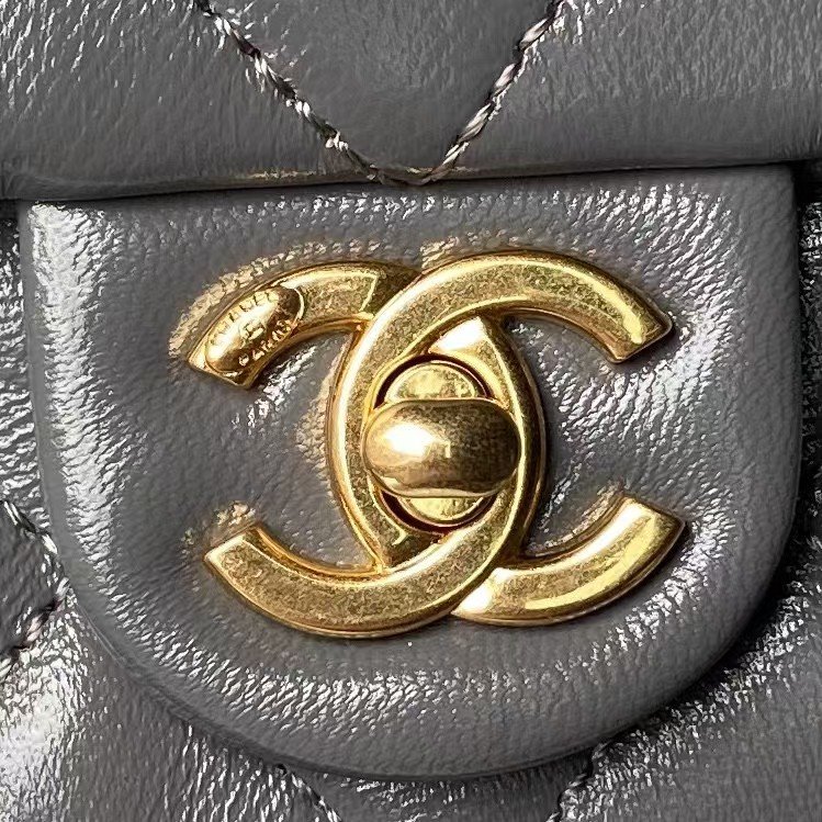 Chanel 24A AS4992 Mini Shiny Lambskin Flap Bag with Top Handle Grey