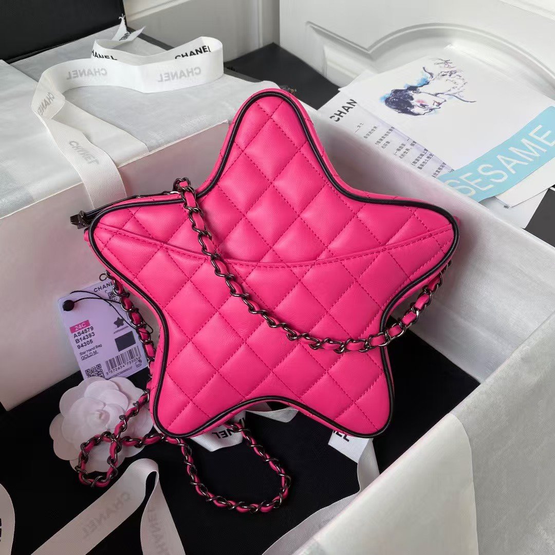Chanel 24C AS4579 Star Bag Fuchsia and Black Satin Black Metal Hardware