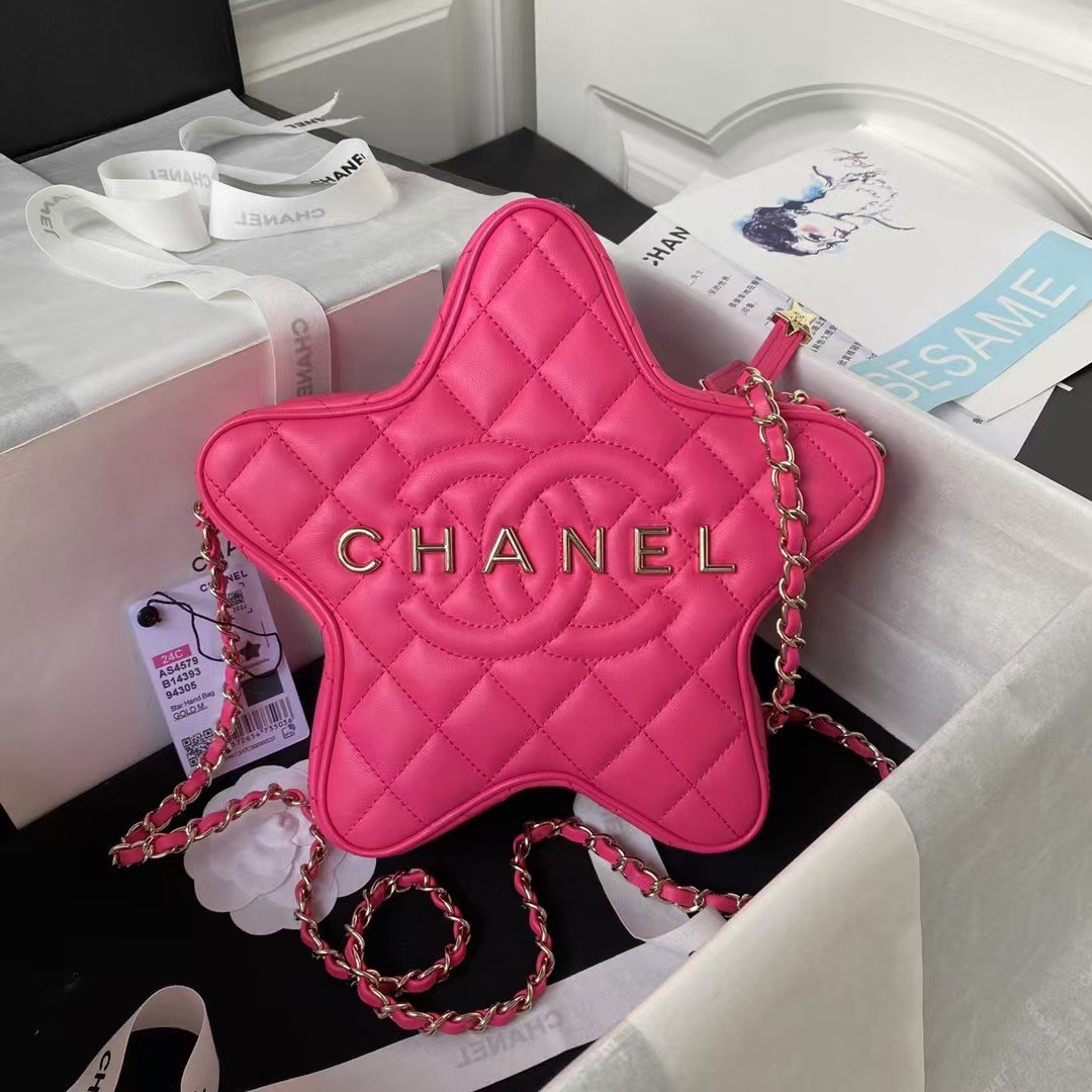 Chanel 24C AS4579 Star Bag Fuchsia Satin Gold Metal Hardware