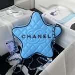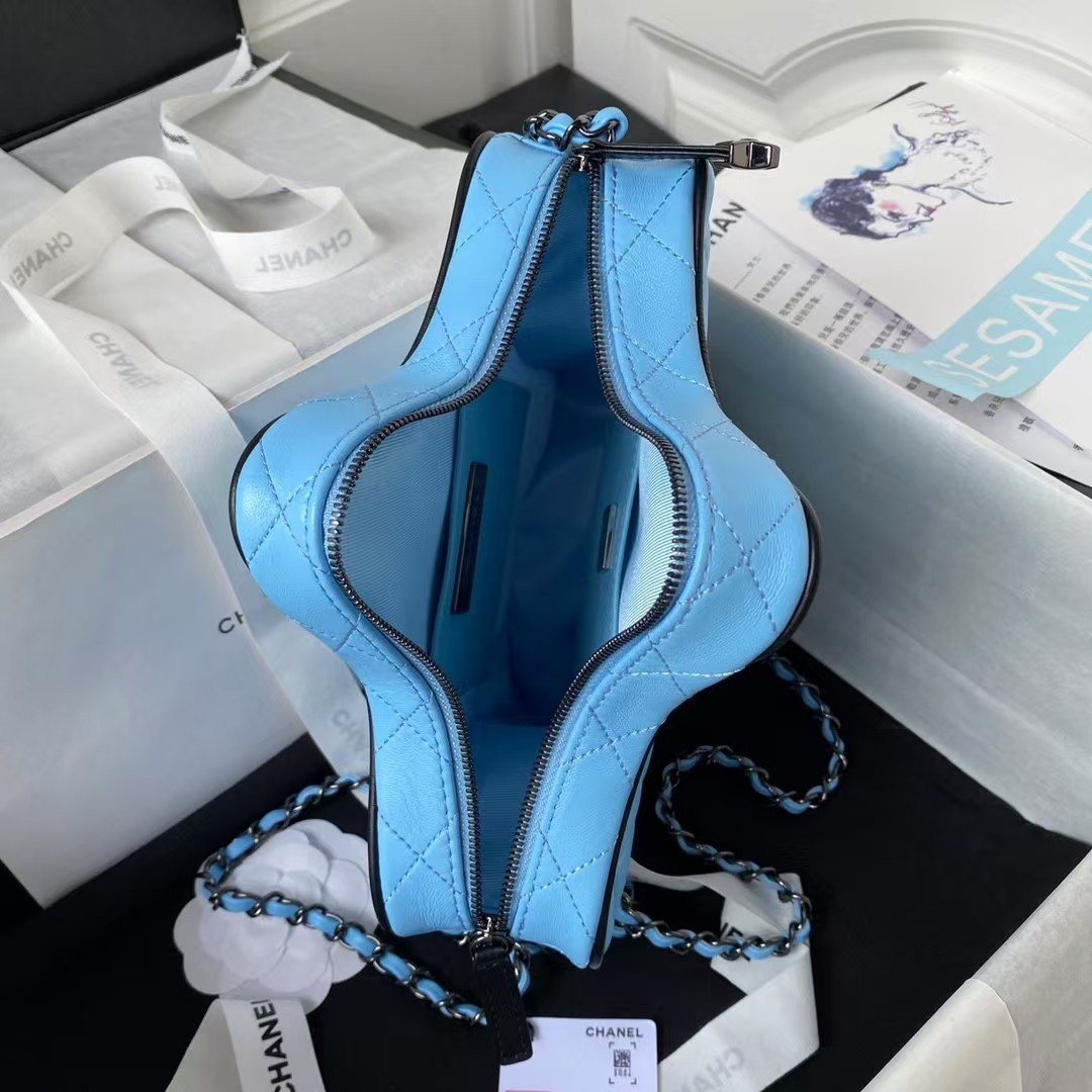 Chanel 24C AS4579 Star Bag Sky Blue and Black Satin Black Metal Hardware