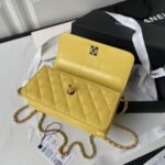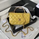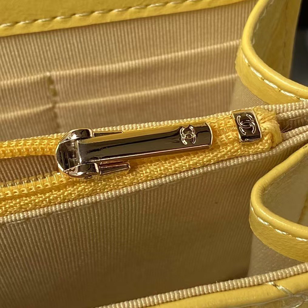 New Chanel 24p Top Handle Woc Pearl Handle Gold Embossed Double C Button Shiny Crinkled Lambskin Yellow