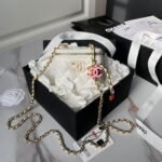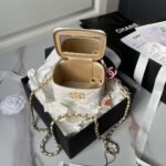 This Chanel mini vanity bag is crafted from shiny lambskin. More than just a bag, this limited edition vanity bag is the embodiment of elegance and practicality, perfect for those who appreciate compact luxury.