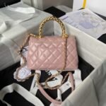 Chanel AS2215 Mini Flap Bag With Metal Top Handle Shiny Calfskin Pink