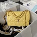 Chanel AS2649 Chain Bag With Gold Charm Small Vintage Calfskin Bag Yellow