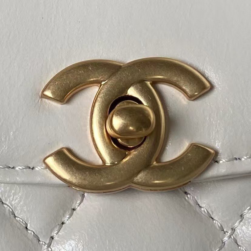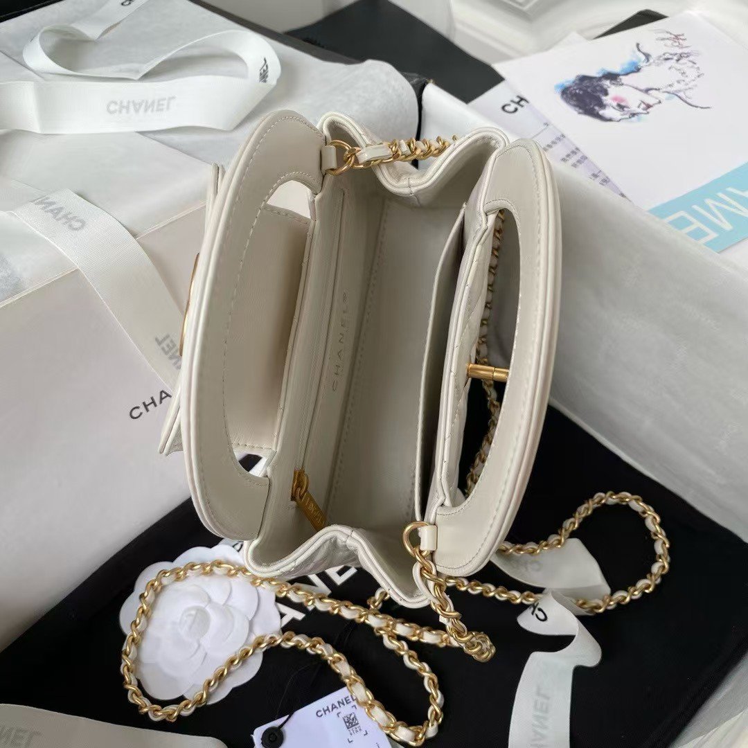 Chanel AS4416 Mini Shopping Bag Shiny Aged Calfskin Gold Tone Metal Off-White