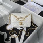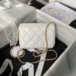 Chanel AS4986 Mini Flap bag Shiny Lambskin Imitation Pearls & Gold-Tone Metal White