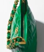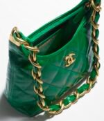 This Chanel Green Quilted Shiny Crinkled Calfskin Small Hobo Bag features CC logo, shiny crinkled calfskin leather with a beautiful luxurious feel, distressed/antique gold tone hardware. Lined in fabric. This bag is perfect for everyday use.