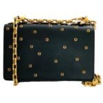 This Christian Dior J’adior Chain Flap Bag Embellished Leather Mini, crafted in black embellished leather, features a slot handclasp with metal plated J’ADIOR signature, chain-link strap, and aged gold-tone hardware. It flap opens to a black suede interior with flap and slip pockets. Christian Dior $215 retail, Crossbody/Shoulder Bag. Excellent condition. Worn a couple of times with faint traces of wear, but looks like new. Black Calfskin Leather Studded with Logo in front Gold-Tone Hardware Logo Chain-Link Shoulder Strap Studded Accents hand sliding strap in front Suede Lining & Single Interior Pocket Snap Closure at Front Shoulder Strap Drop: 21.25″ Height: 5.25″ Width: 8.25″ Depth: 2.75″