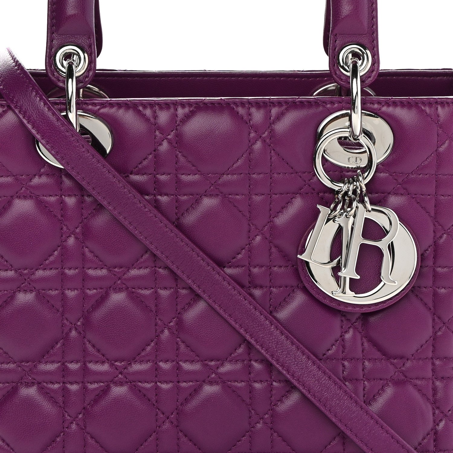 CHRISTIAN DIOR Lambskin Cannage Medium Lady Dior Purple