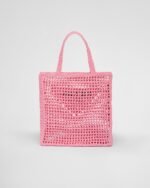 This crochet tote bag with a soft, deconstructed design boasts a light and summery mood. A new interpretation of Prada’s emblematic triangle decorates the front and is embellished at its center with the embroidered lettering logo.