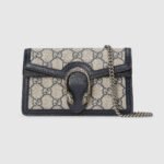 Mirroring the material’s historic origins, GG Supreme is introduced in a timeless mix of blue and beige for Gucci Love Parade. The canvas has come to the front of each collection decade after decade to become a hallmark of the House. Here, the classic palette defines this Dionysus super mini bag.