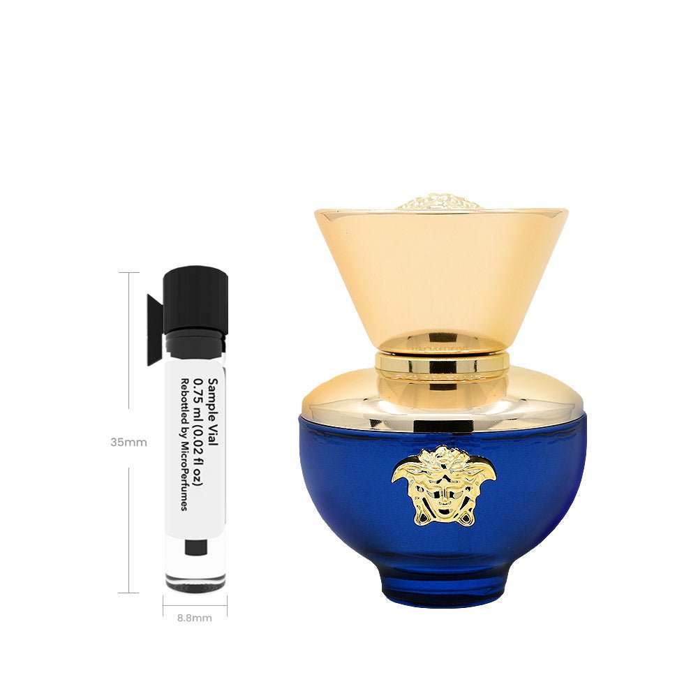 Dylan Blue Pour Femme (Eau de Parfum) by Versace is a fragrance for women. introduced in 2017. It opens with crisp. fruity notes. moves to a floral heart. and settles on a musky. woody base for a vibrant. elegant signature. This scent is perfect for spring and summer days. offering a refreshing yet sophisticated aroma suitable for both casual outings and formal events. Our 0.75 ml sample vial gives you enough fragrance for several wears. making it a low-risk way to explore a scent without commitment.
