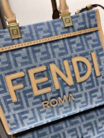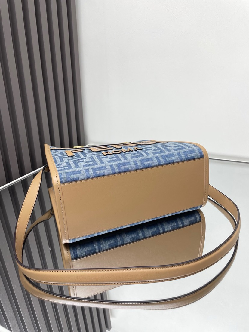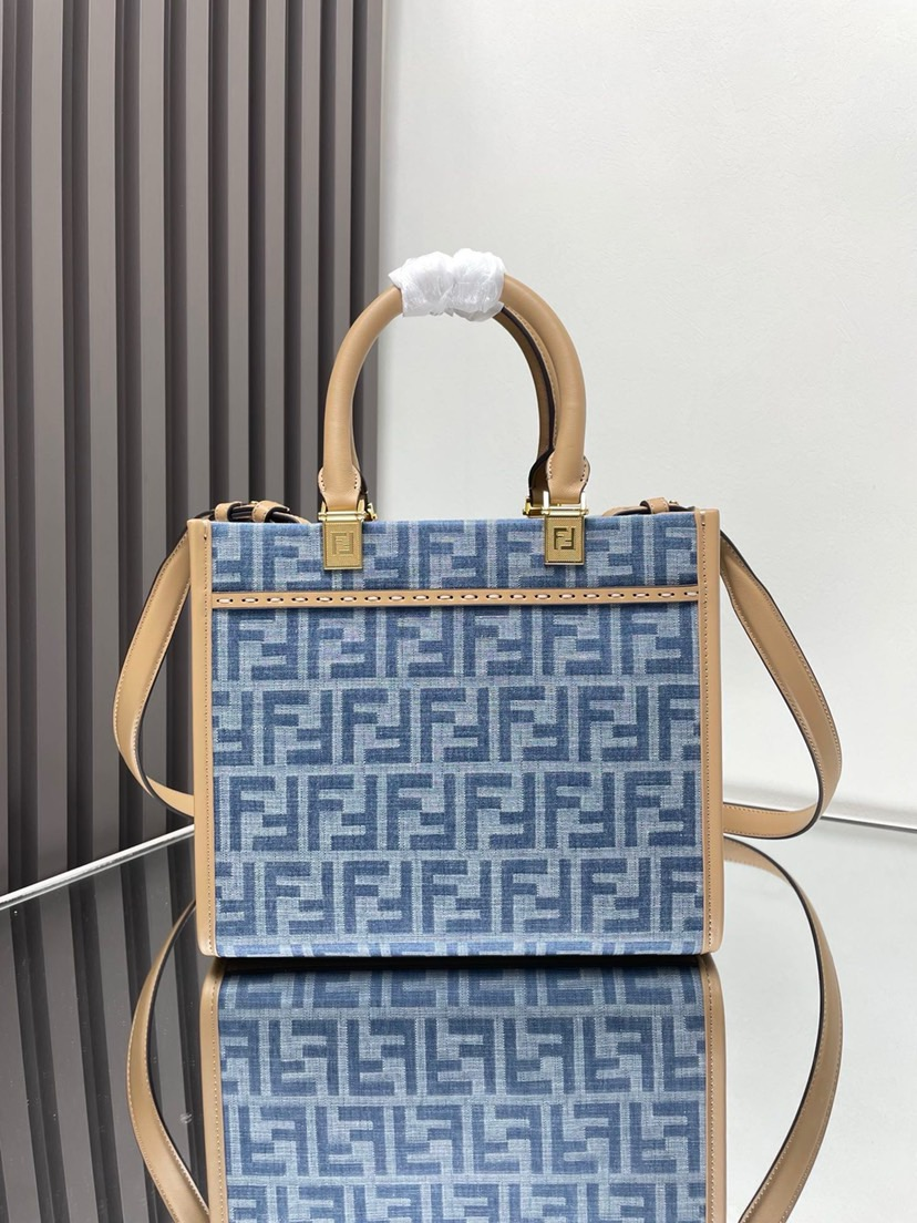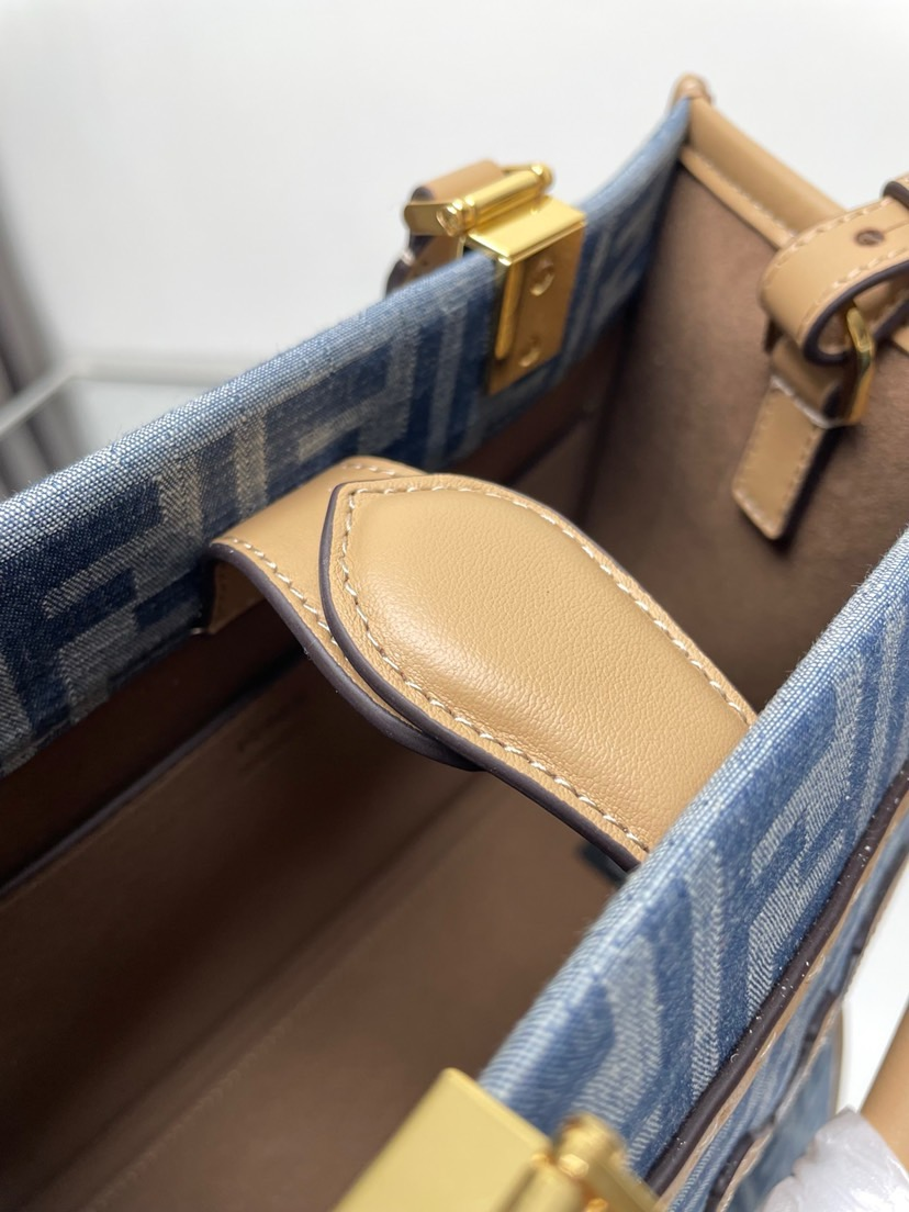 Fendi Sunshine Small Light blue FF denim fabric shopper