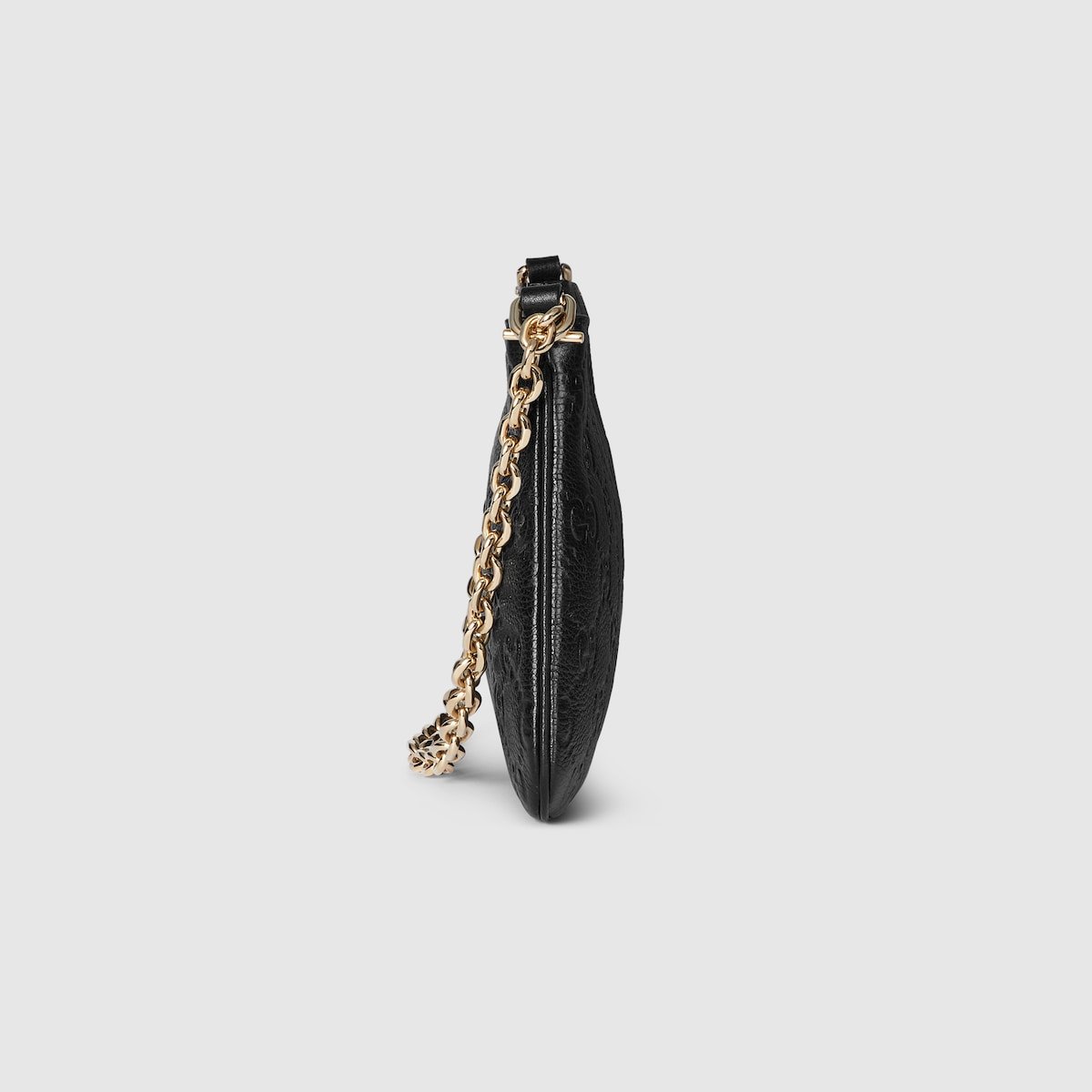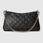 The new GG Emblem collection reinterprets the House’s history of elegance and craftsmanship. This medium shoulder bag is crafted from GG grainy leather and comes with a chain strap as well as a detachable leather shoulder strap.