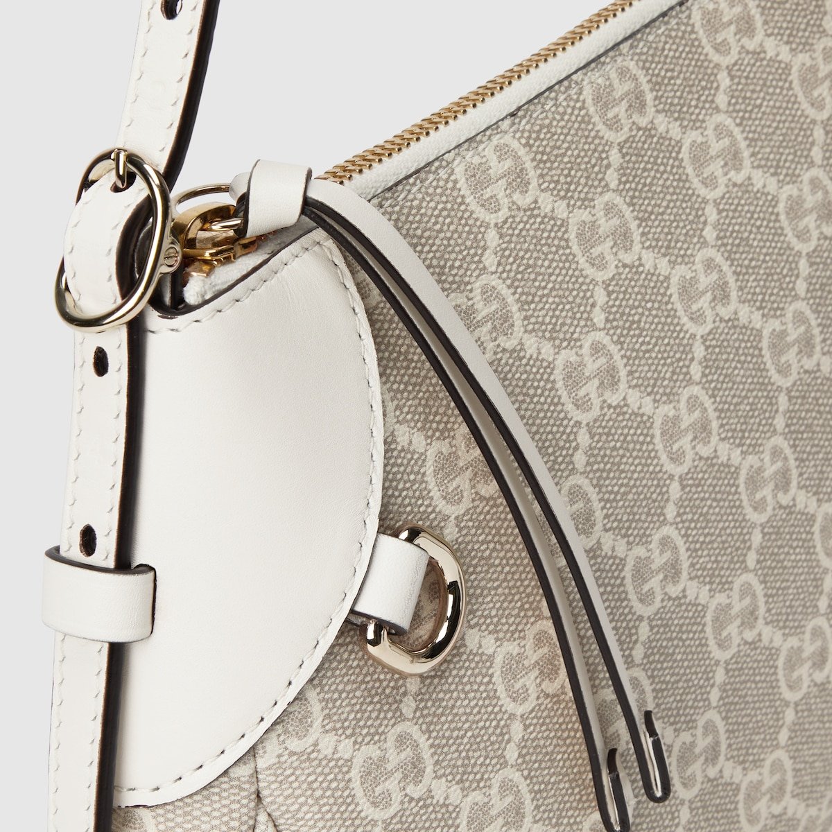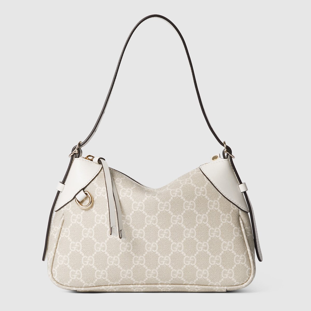 The new GG Emblem collection reinterprets the House’s history of elegance and craftsmanship. This small shoulder bag features numbered notches on the adjustable shoulder strap, inspired by the equestrian world.
