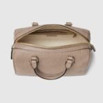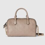 The new GG Emblem collection reinterprets the House’s history of elegance and craftsmanship. This small top handle bag has two zippers for easy access, and a light gold-toned chain and leather shoulder strap for crossbody wear.