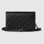 The GG Emblem collection reinterprets signature motifs through creativity and innovative functions , and is envisioned to be cherished for years to come. Introduced in the latest line of small accessories, this super mini bag is crafted from emblematic GG grainy leather. The design features an inside zip pocket and an adjustable leather and chain shoulder strap.