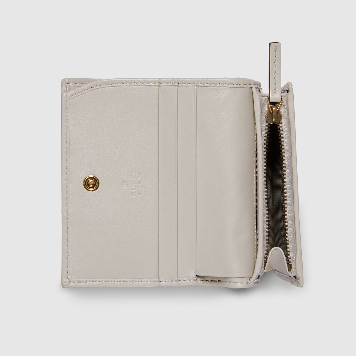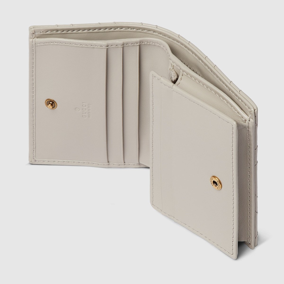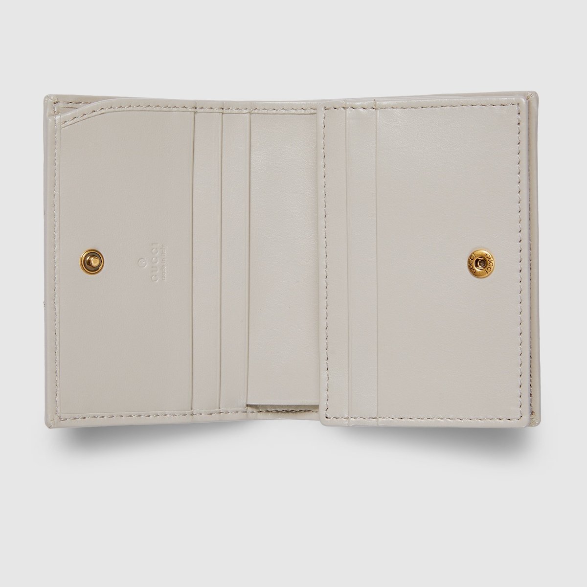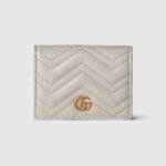 The GG Marmont collection is defined by the emblematic Double G hardware—a contemporary take on a Gucci archival belt buckle from the ’70s that has become a hallmark of the House. This card case wallet is crafted with the same matelassé leather as the bags from the rest of the collection.