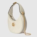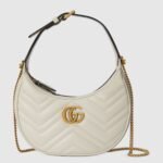 With a crescent silhouette and textured white leather, this mini bag has a defined retro feel. Each collection is a journey through different decades and eras, combining vintage elements with archival codes or contemporary details to create new designs that exist outside of space and time. The petite accessory reflects this fascination with the past, a concept that runs throughout the world of GG Marmont.