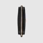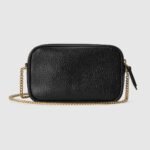 The GG Marmont collection is defined by the emblematic Double G gold-toned hardware, a contemporary take on a Gucci archival motif. This black leather super mini bag with a chain strap and zip closure reveals two card slots inside for effortless organization.