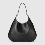 Introducing the Gucci B, which draws inspiration from a 1950s archival style. This medium shoulder bag, embodying the essence of its mid-20th century design origins, is crafted from soft grainy leather which drapes on the body.