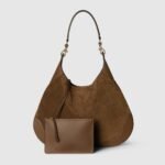 Introducing the Gucci B, which draws inspiration from a 1950s archival style. This medium shoulder bag, embodying the essence of its mid-20th century design origins,is crafted from soft suede which drapes on the body.
